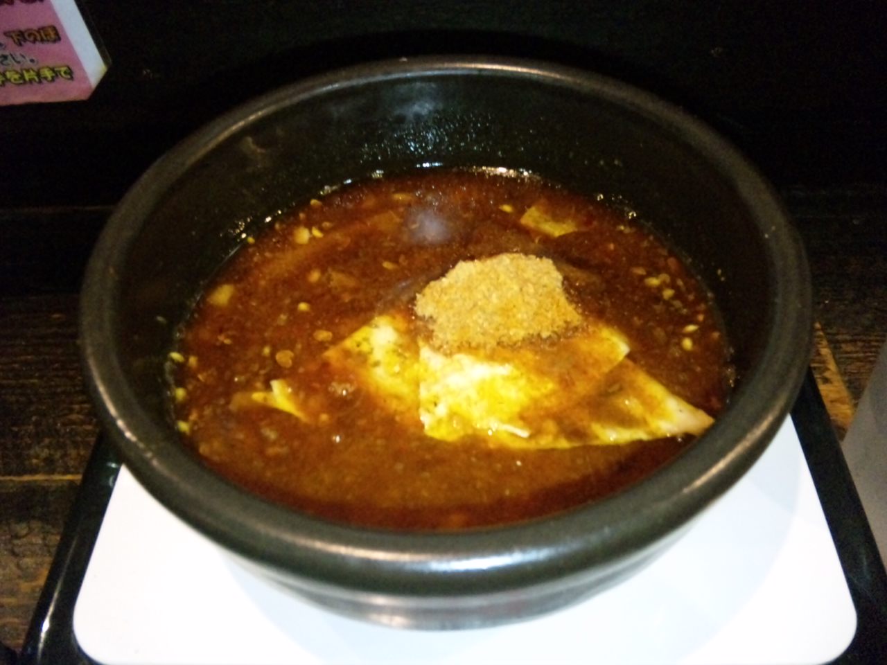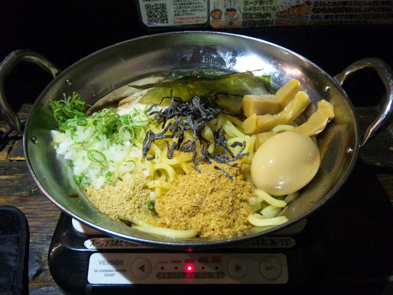 お店のテーブルになぜがIHヒーターがあって、つけめんのスープを温められるようになっています。