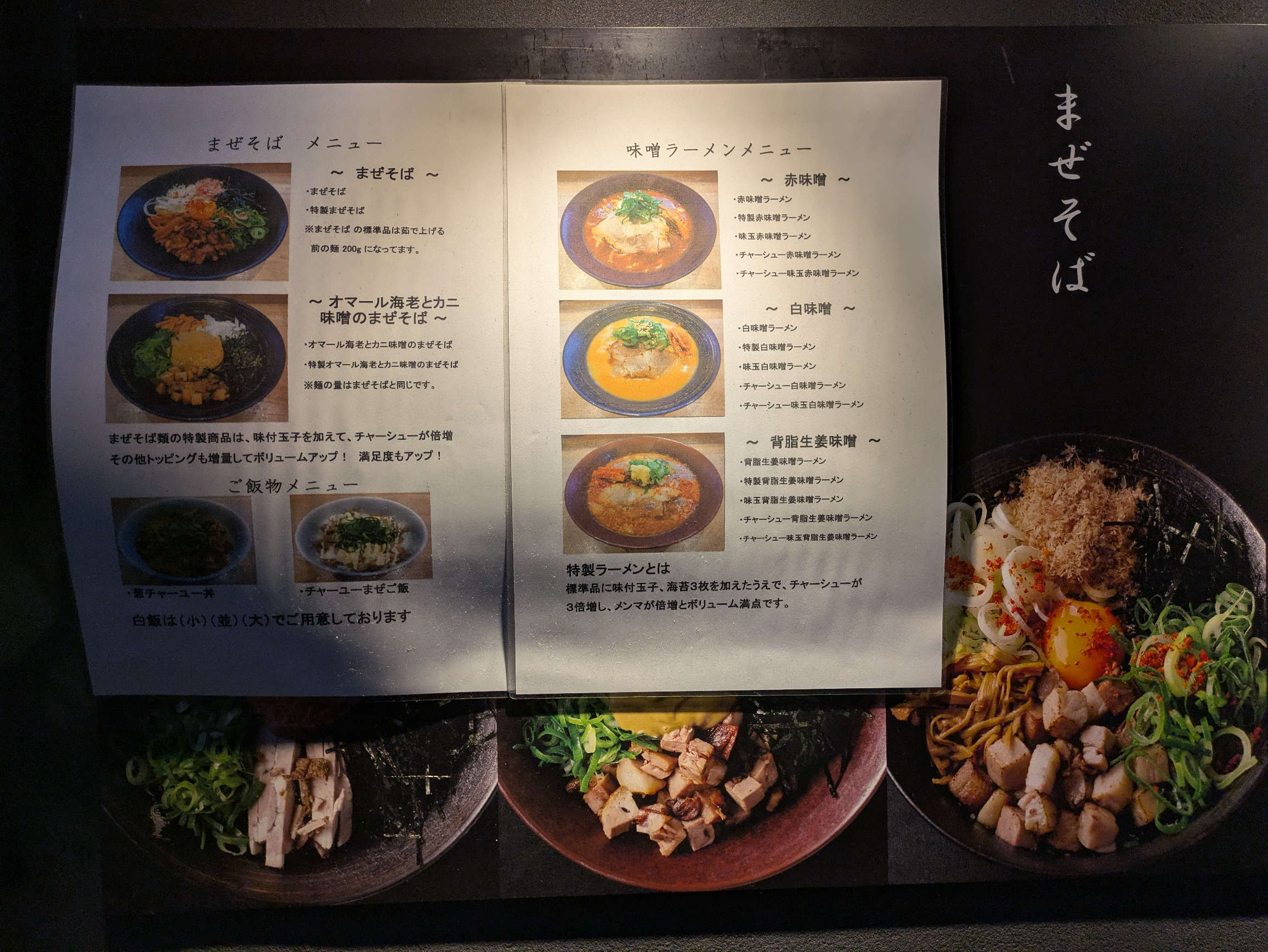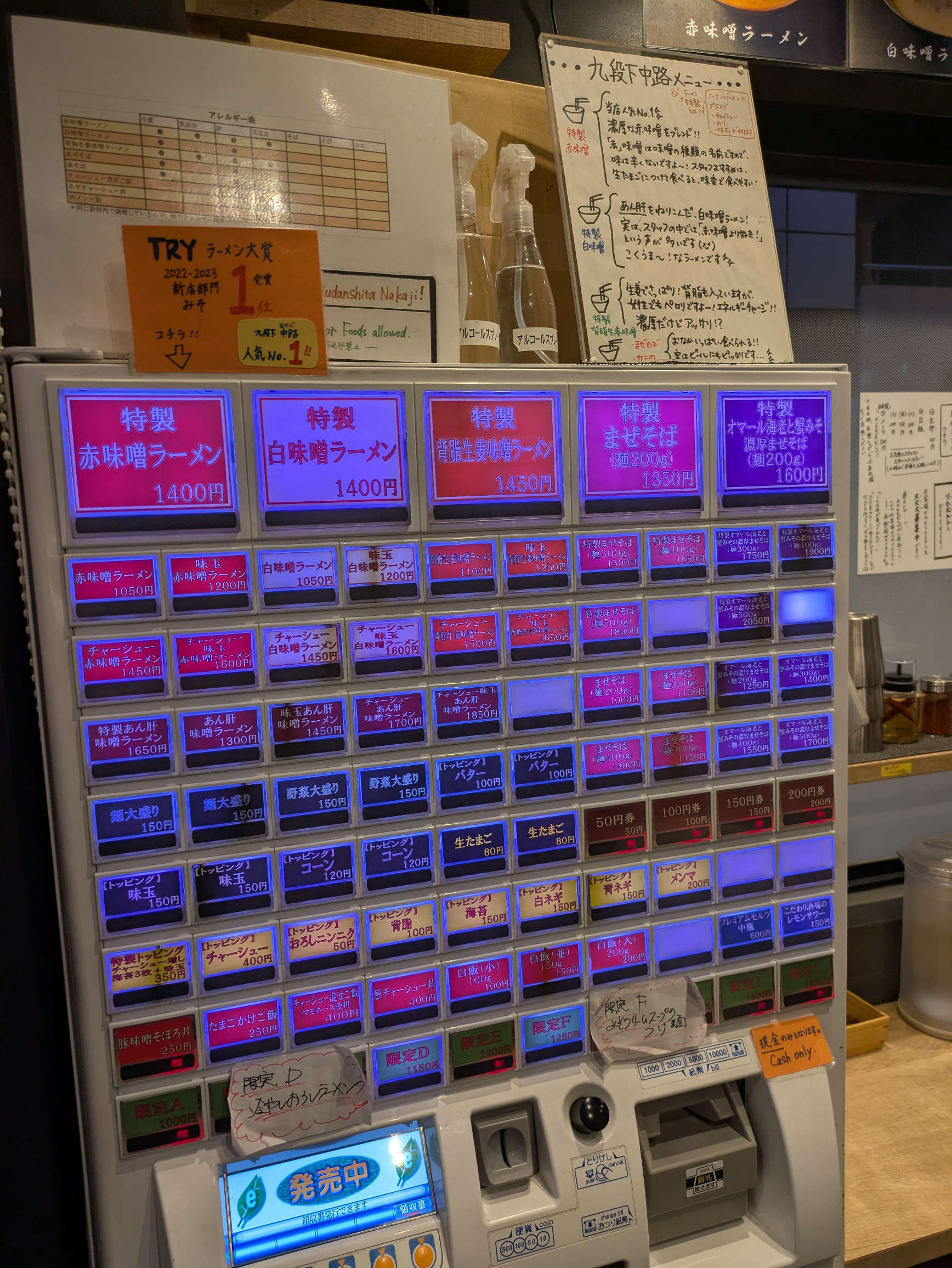 「赤味噌」が好きなブログ主的に、そして通常のみそラーメンとの差別化の観点からは赤味噌ベースのラーメンには非常に魅力があり、左上の「特製赤味噌ラーメン」を選択す。