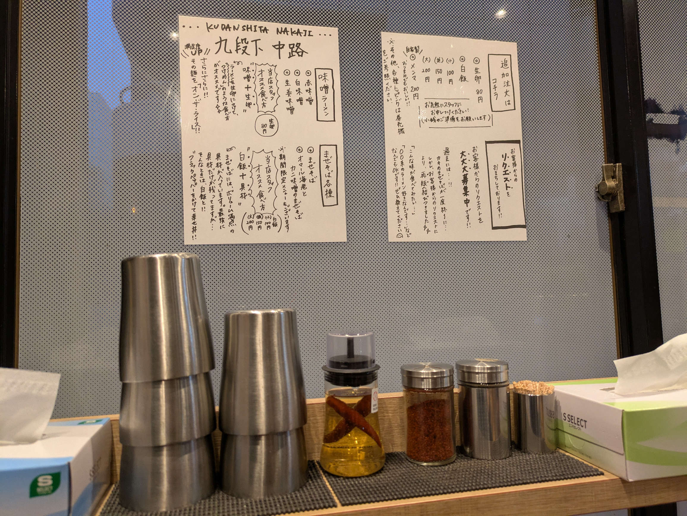 カウンター付近は調味料以下のような感じ。