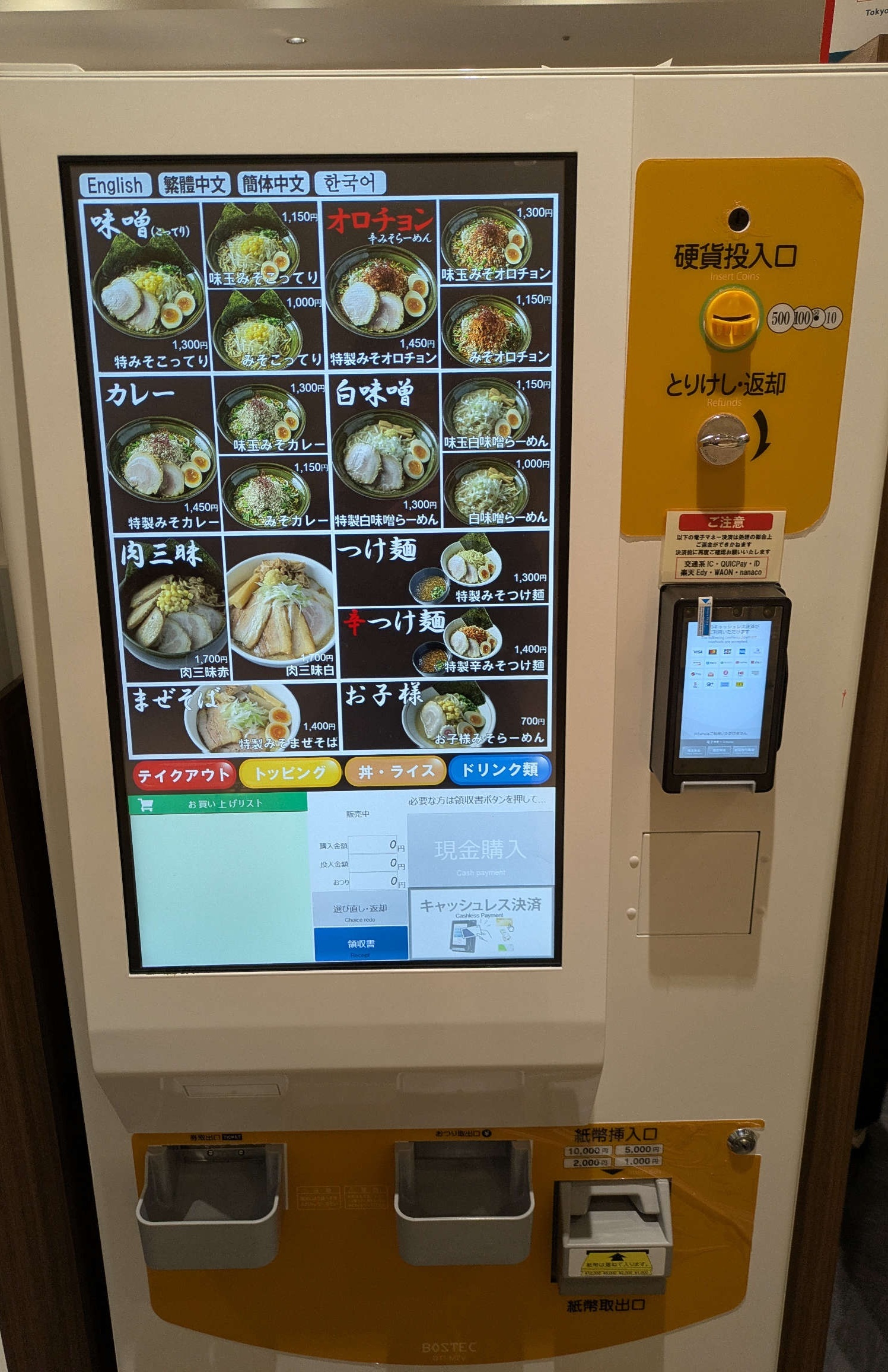 キャッシュレスももちろん可能ではあるものの、食券機の操作が難しい気がするので留意されたい。まぁ、ブログ主がこういうのに疎いだけである可能性はある。