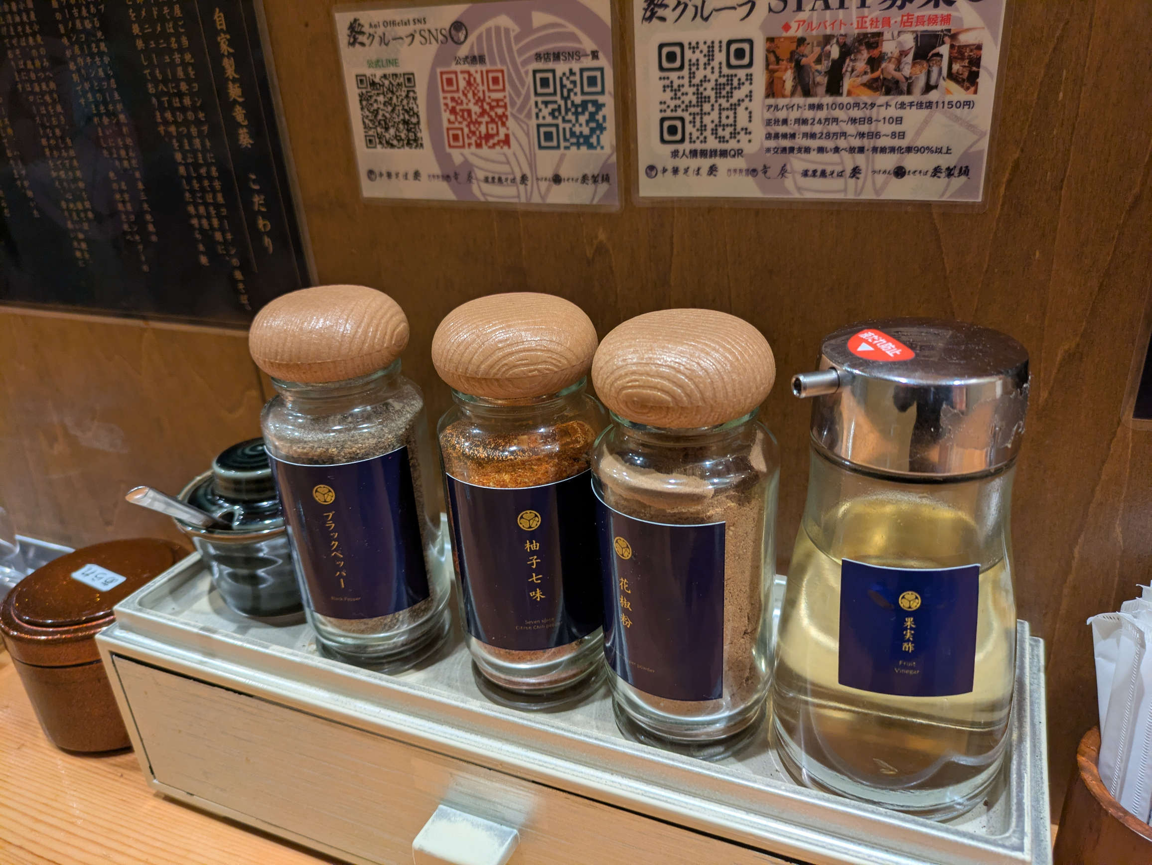 卓上調味料類は以下のように。