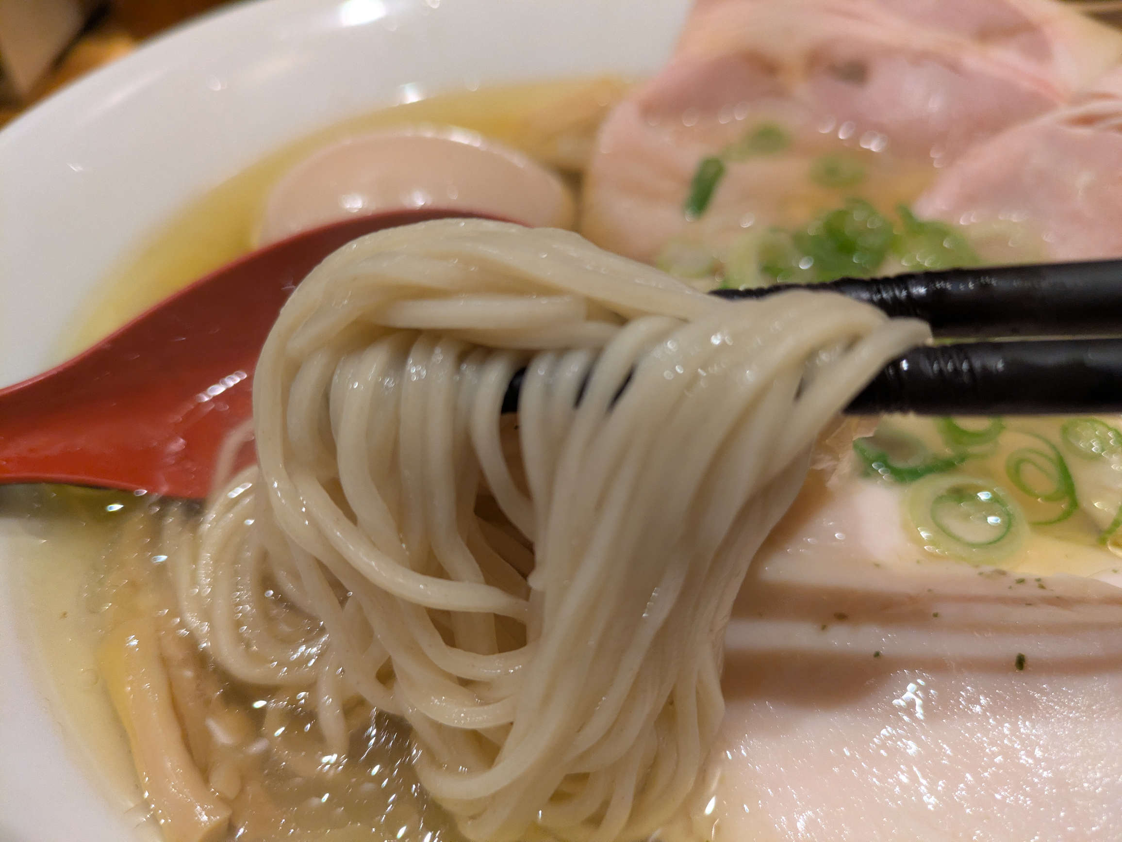 金色の塩スープは鶏ベース、お店の説明によれば名古屋コーチン使用の出汁である模様。